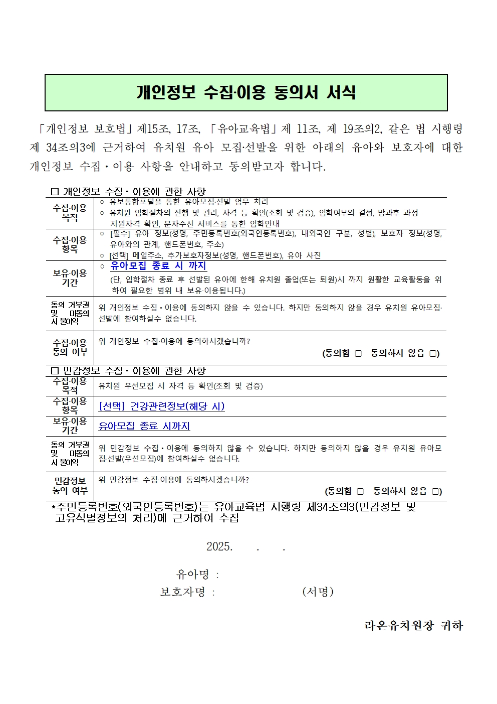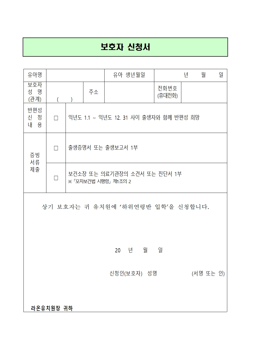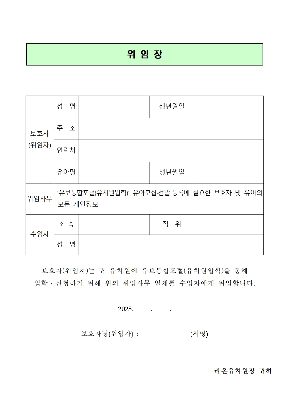 (위임장과 보호자신청서는 해당 가정만 제출)